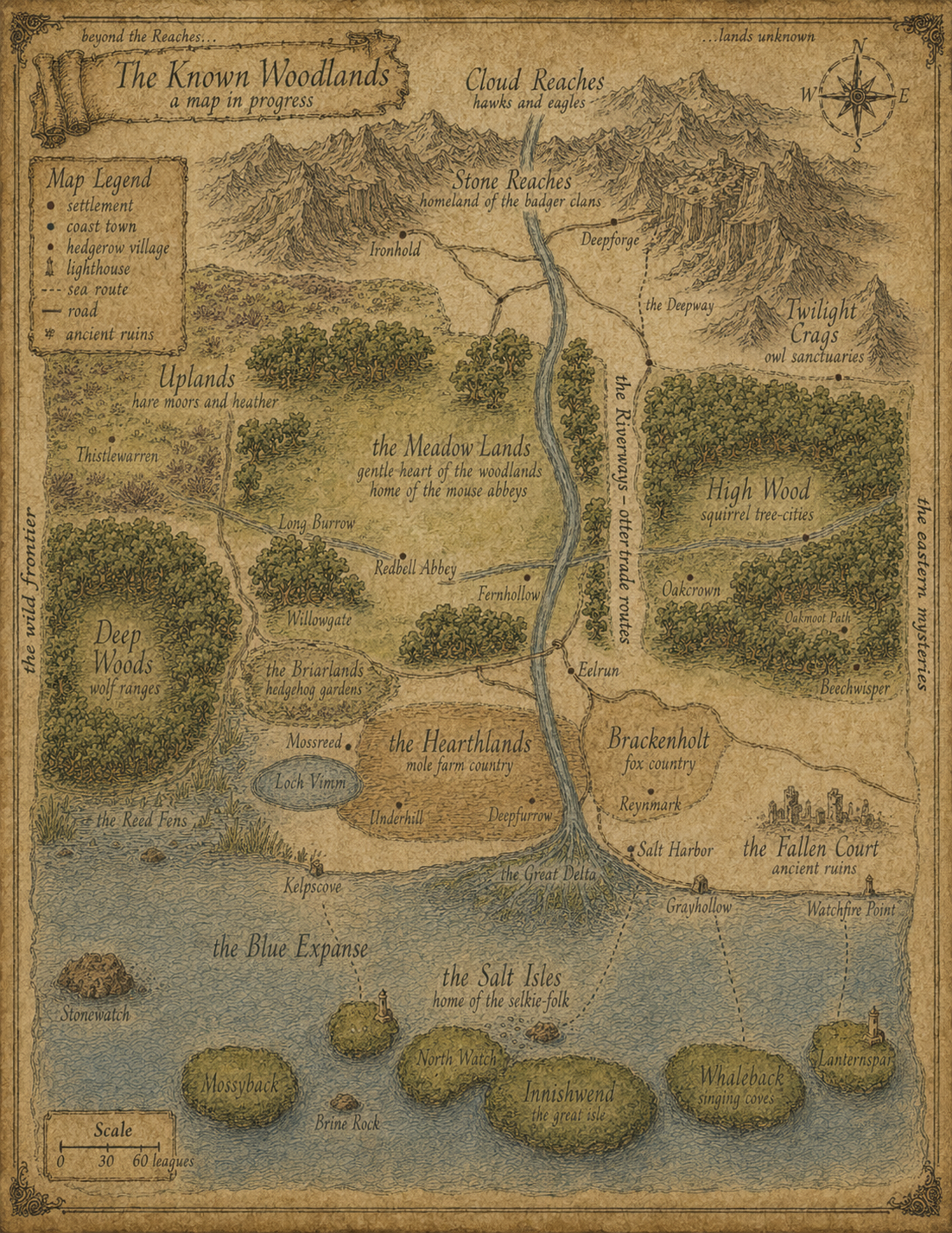 a woodland fantasy world of warmth and depth — of abbey bells and singing coves, of mountain forges and standing stones, of tides and seasons and well-told stories